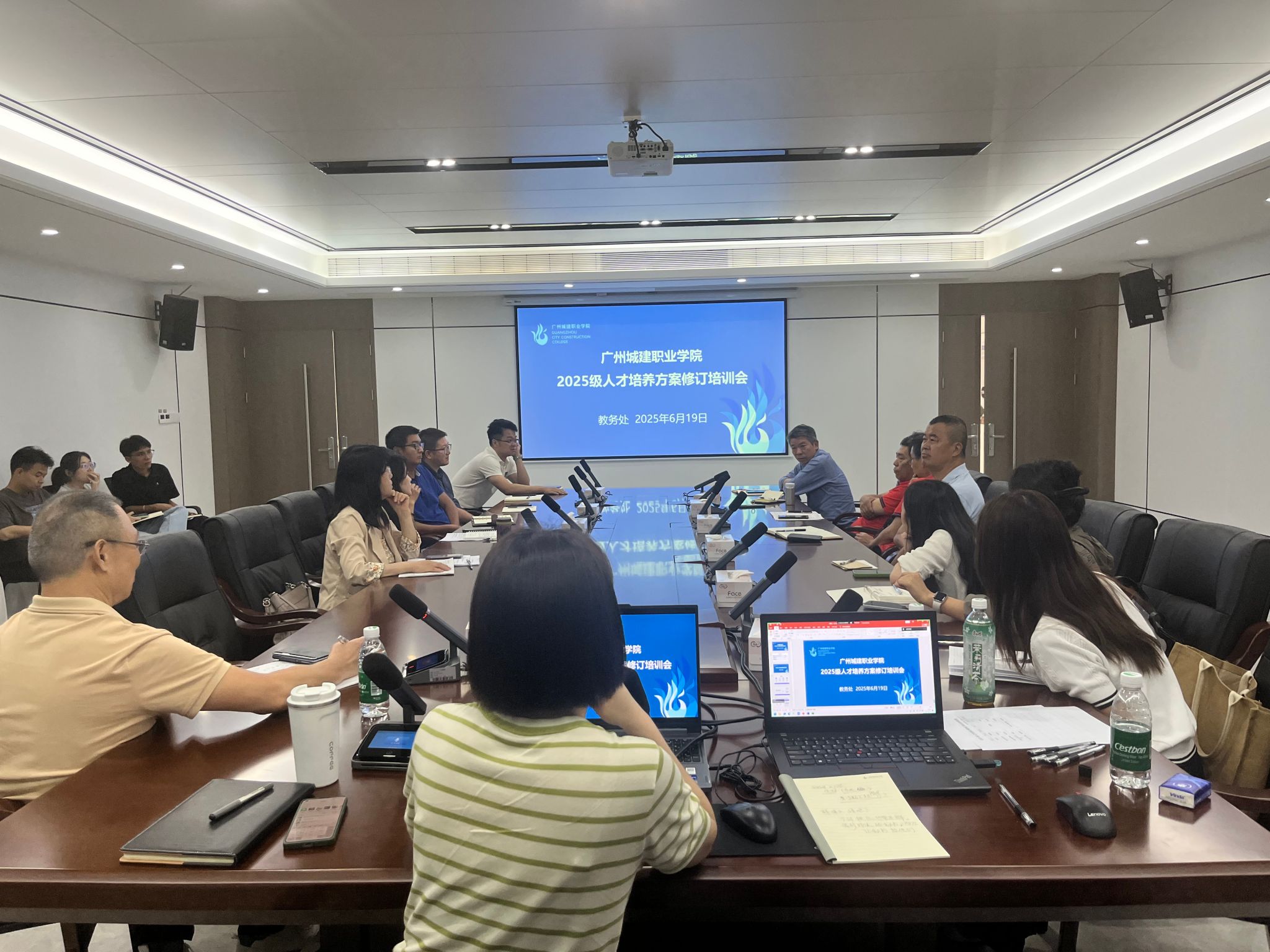 为精准对接教育部 2025 版《职业教育专业教学标准》要求,落实广东省高等职业学校办学能力评价工作核心指标,确保 2025 级人才培养方案科学编制、高效落地,6 月 19 日 下午在清远校区综合楼 204 会议室召开 2025 级人才培养方案修订培训会。教务处处长王平,教务处副处长沈亚圆,清远校区各二级学院教学副院长、2025 级人才培养方案修订教师及负责人才培养工作的教学秘书参会。会议由教务处处长王平主持。